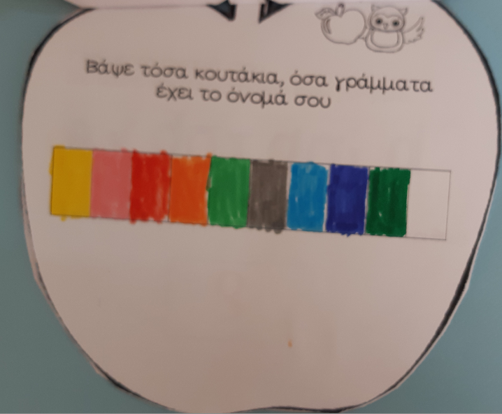 Οι δραστηριότητες μέσα στο βιβλίο είναι οι ίδιες με το προηγούμενο απλά μεταμορφώθηκαν οι σελίδες σε μήλα. Στο εξώφυλλο όμως, από μία σχισμή βγαίνει το ονοματάκι μας, γραμμένο πάνω σε ένα όμορφο σκουληκάκι:
